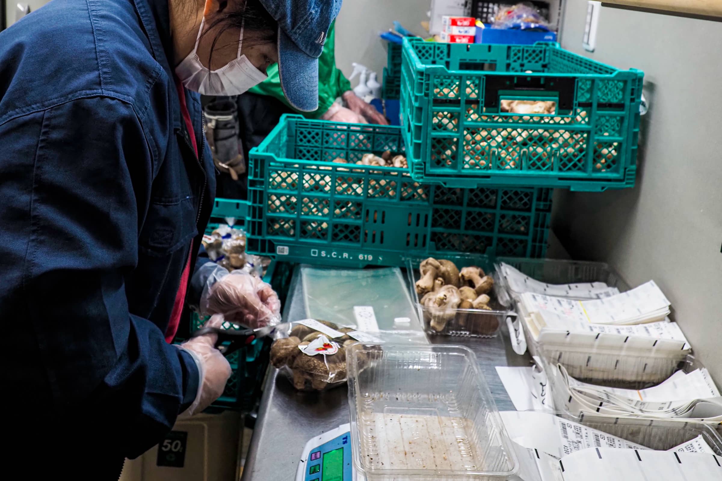 musubiの椎茸を使った、乾燥椎茸の梱包やパッケージのシール貼りなど、体力面で自身のない方でも座りながら作業できるお仕事もあります。